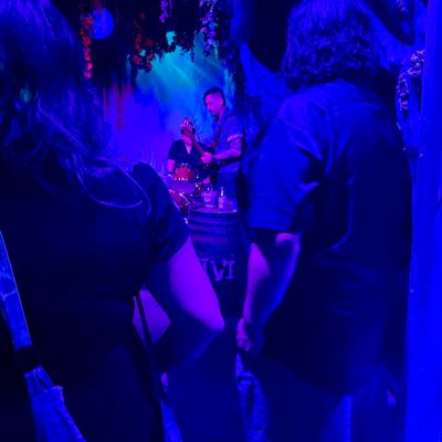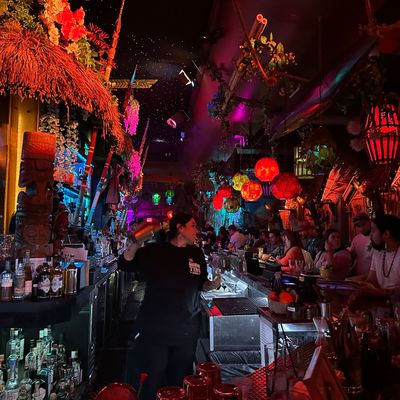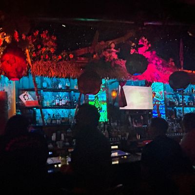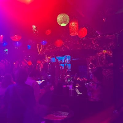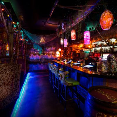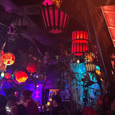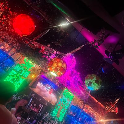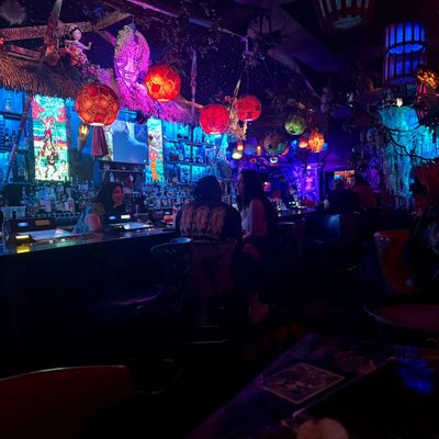 The atmosphere is high-energy and a bit eccentric, featuring a lively environment filled with music from DJs and live performers. The decor creates a transportive, tropical feel that even includes an unexpected, quirky surprise found in the restrooms.ambiance_potoo