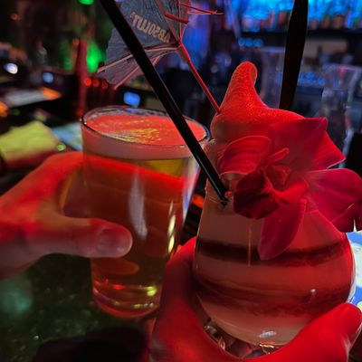 Reviewers rave about the spectacular cocktails, specifically highlighting the delicious Dole Whip rum drinks. The energy is consistently described as amazing and vibrant, making it a must-visit destination for tropical vibes.reviews_potoo