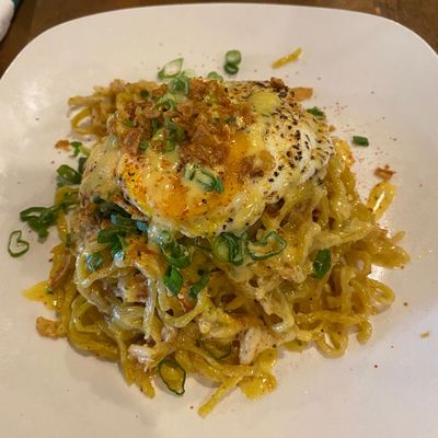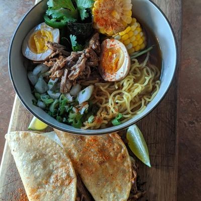 Casual pub with eclectic menu featuring ramen, bacon-centric dishes, and unique appetizers.