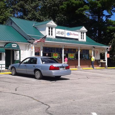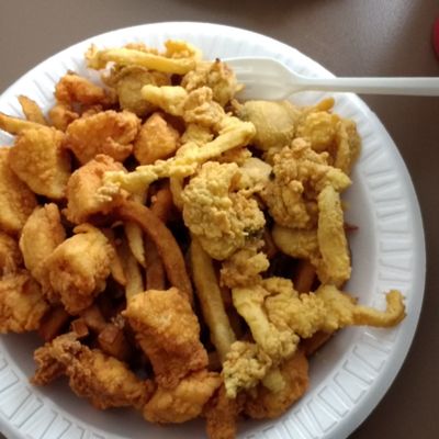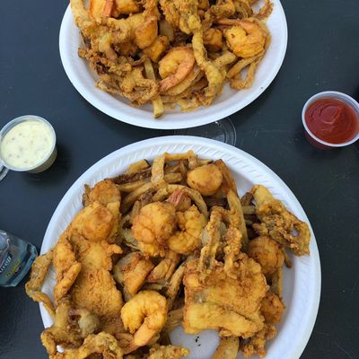 Seasonal drive-in/restaurant with American seafood, burgers, and ice cream, featuring a duck pond for kids.