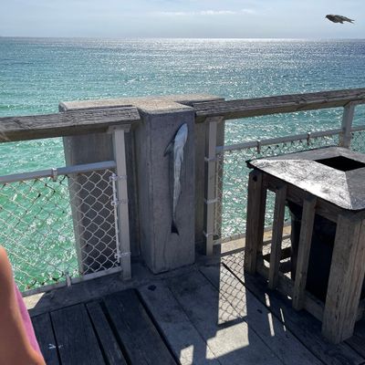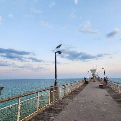The Island Pier offers a scenic experience with opportunities for fishing and wildlife viewing. Visitors can enjoy beautiful ocean vistas, especially during sunset, and may spot dolphins, sharks, and sea turtles.