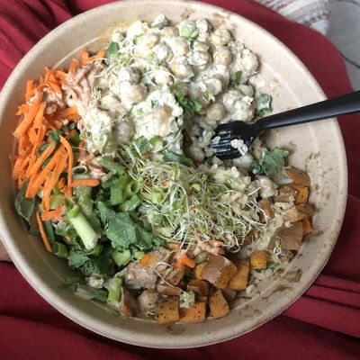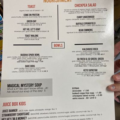 Enjoy fresh-pressed organic juices and epic smoothies tailored with various supplements. The menu features a variety of healthy food options and nutritious snacks.food_potoo
