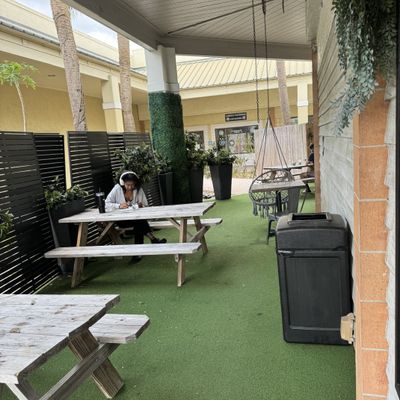 The atmosphere feels like a refreshing blend of hippy and cool, offering a sense of kindness for both mind and body. Patrons can grab a quick meal at the counter or settle into a seat on the bench for a relaxed experience.ambiance_potoo