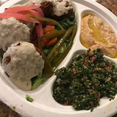 Casual Middle Eastern restaurant offering delicious Lebanese cuisine, including shawarma and mezze platters known for their generous portions and fresh ingredients in a cozy setting.