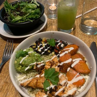 Now-closed, upscale American restaurant that offered healthy, globally-inspired cuisine, including vegetarian and gluten-free options, in a cozy atmosphere.