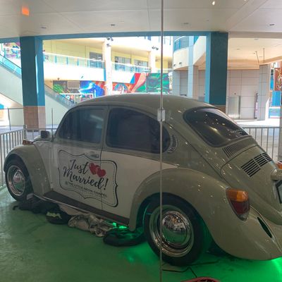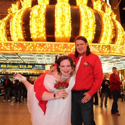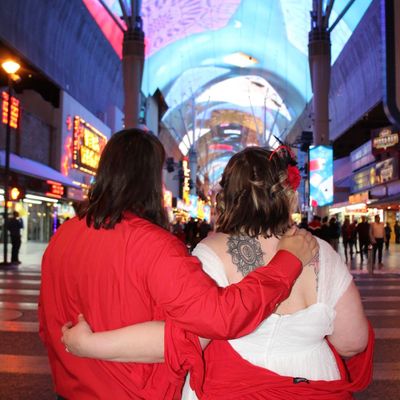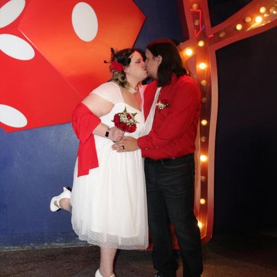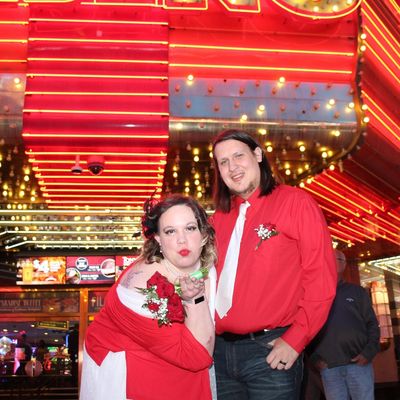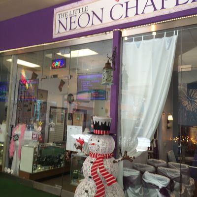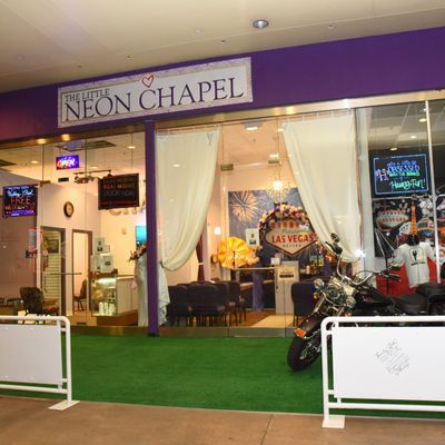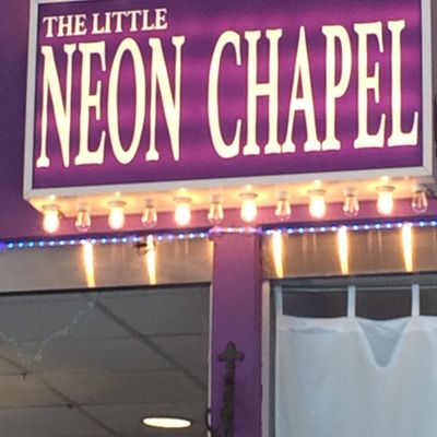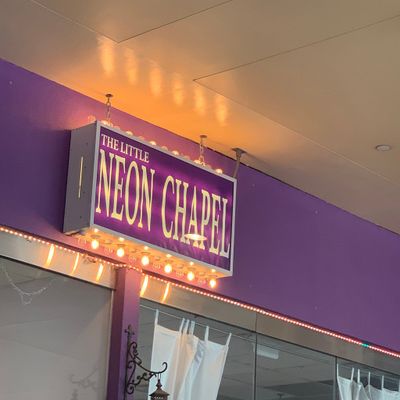 The atmosphere is defined by a classic, kitschy Las Vegas charm with bright neon signage that creates an iconic, high-energy wedding environment. It offers a sense of old-school Americana that is perfect for quick ceremonies or elopements.ambiance_potoo