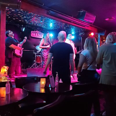 The low-lit interior of this live music venue feels like a classic, no-frills rock club. It's a standing-room-only space where the focus is squarely on the stage and the music.