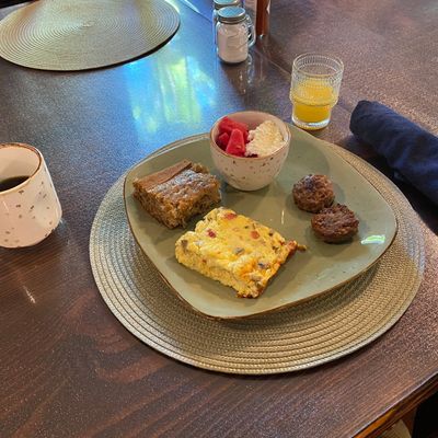 The morning breakfast service includes various options, including specific gluten-free selections to accommodate different dietary needs.food_potoo