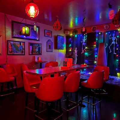 Unique establishment designed to evoke the atmosphere of the 1960s, reminiscent of a bomb shelter. It features authentic retro decor, including numerous JFK photographs, and offers a laid-back environment with a separate, well-ventilated smoking room.