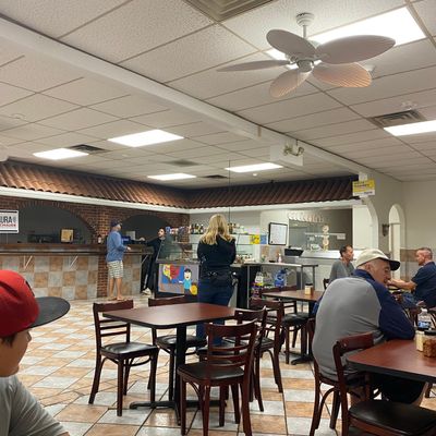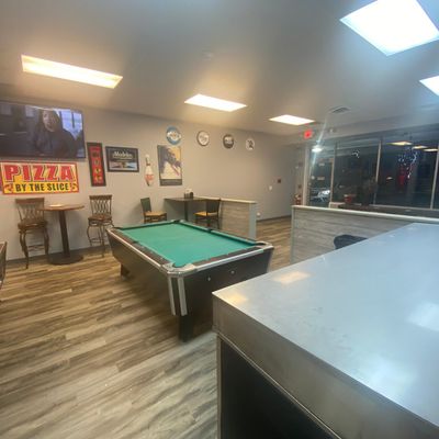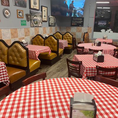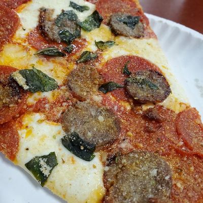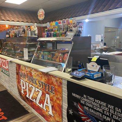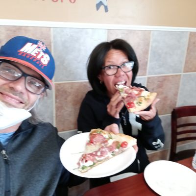 Casual pizza restaurant offering delicious NY-style thin crust slices and whole pies with unique toppings, known for its friendly owner and upbeat atmosphere.