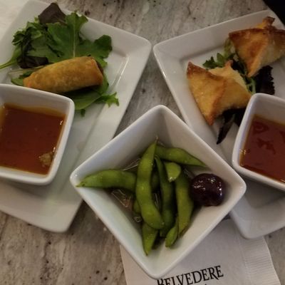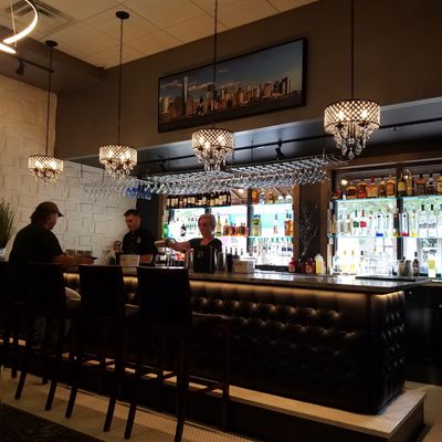 Sophisticated bar with an extensive martini menu, tapas, and sushi, offering a polished atmosphere in a historic setting.