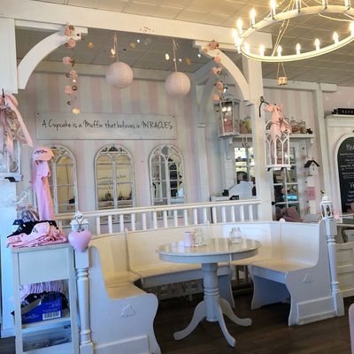 Charming British-themed tea shop offering whimsical decor, delicious cupcakes, and savory options like soup and stew.