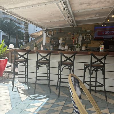 The outdoor patio offers a relaxed setting with several sports TVs positioned around the bar area. It feels like a casual spot to catch a game while enjoying the oceanfront atmosphere.ambiance_potoo
