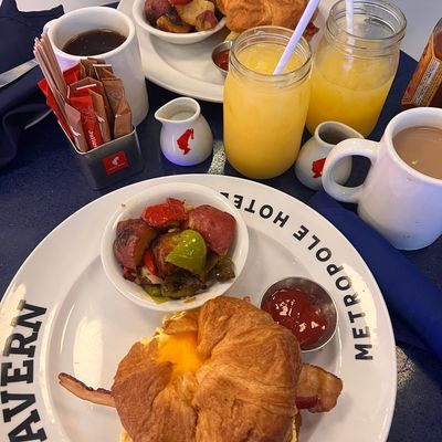 The menu features fresh and flavorful options like the Grilled Chicken Panini. The kitchen also prepares a variety of brunch staples and classic American fare.food_potoo