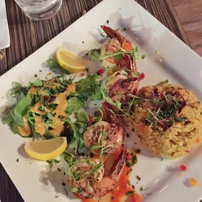Upscale American wine bar restaurant with live music, offering a varied menu including American and some Italian-influenced dishes.