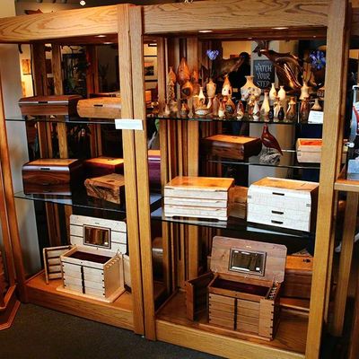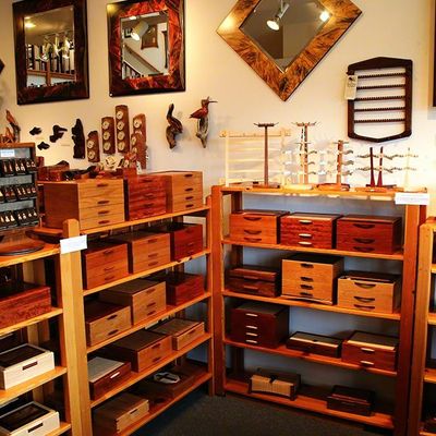 Unique shop showcasing a vast array of handcrafted wooden items. It features everything from intricate jewelry and kitchenware to magnificent furniture and art pieces, all created by talented artisans.