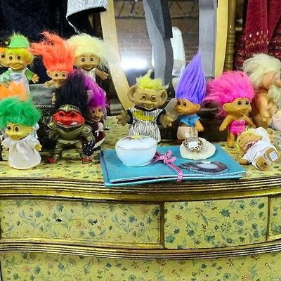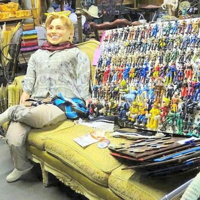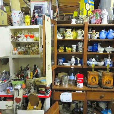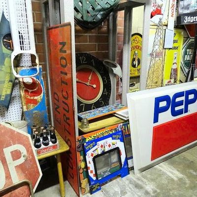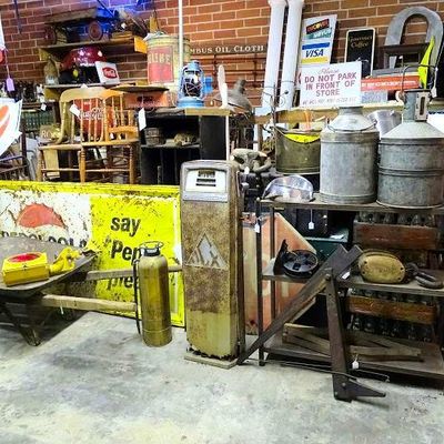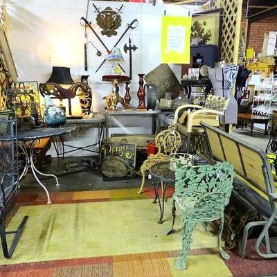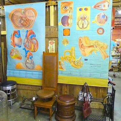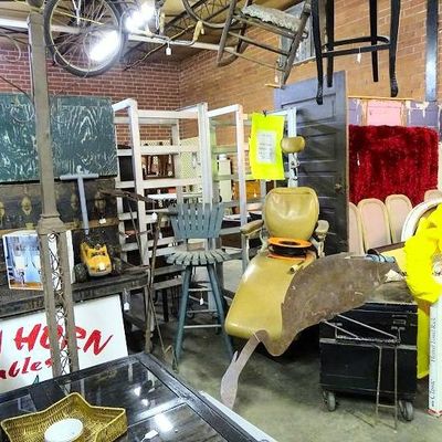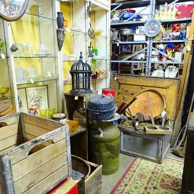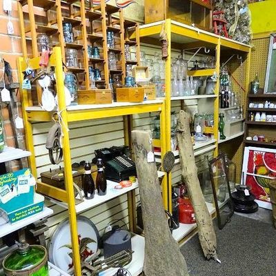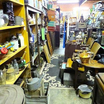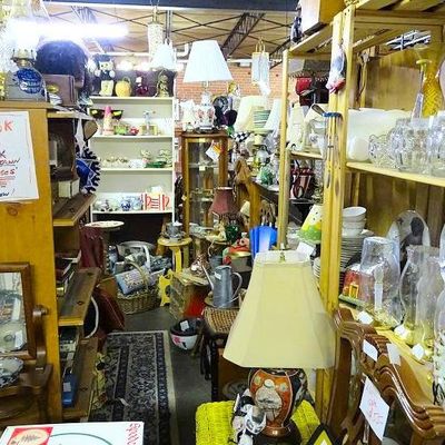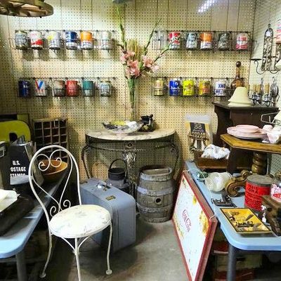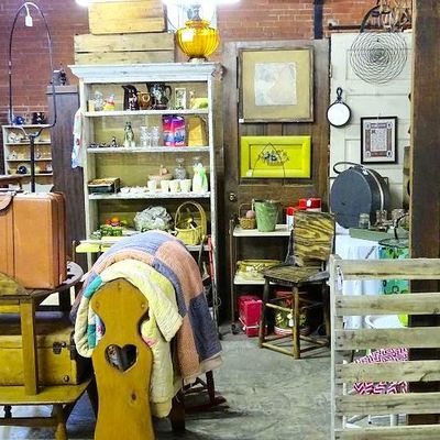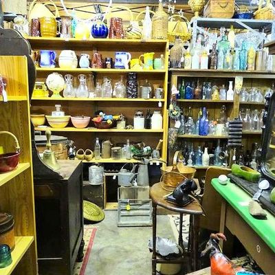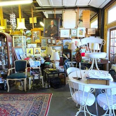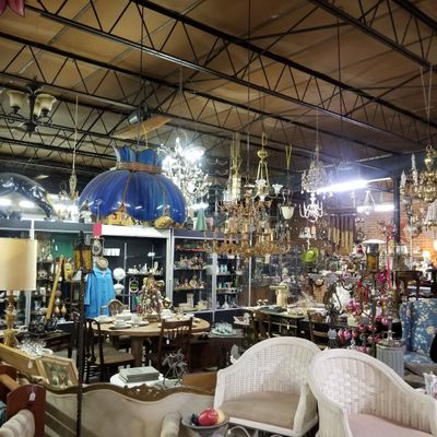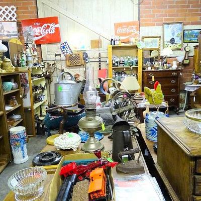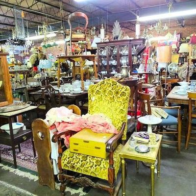 Large warehouse-style venue filled with numerous vendor booths offering a wide and eclectic variety of antiques, collectibles, and unique items. Visitors can expect to find everything from furniture and glassware to unusual oddities, with prices varying by vendor.