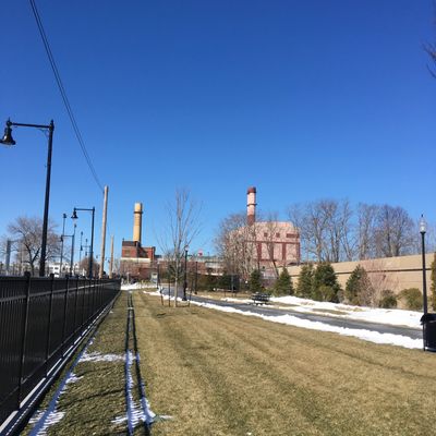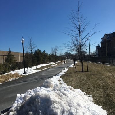 Straightforward public space covering approximately four acres. It features amenities such as bike racks, seating, and a paved path suitable for walking or running.