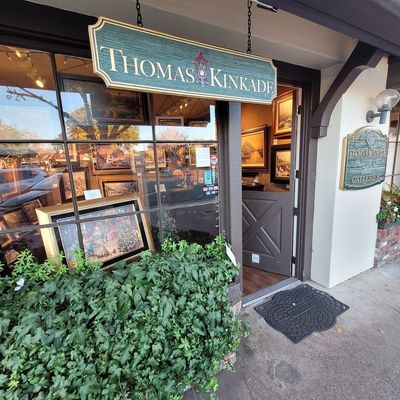 Dedicated space showcasing the works of Thomas Kinkade, often referred to as "The Painter of Light." The gallery features a wide array of his original paintings and newer offerings, with pieces displayed by subject matter, including local scenes, baseball stadiums, European cities, and Disney themes. Visitors can explore various items, from investment-grade works to more accessible pieces like puzzles, calendars, and mugs, in a well-lit and informative environment.