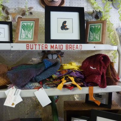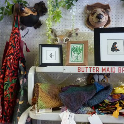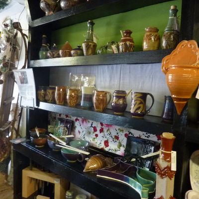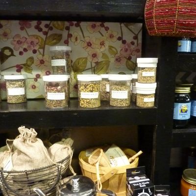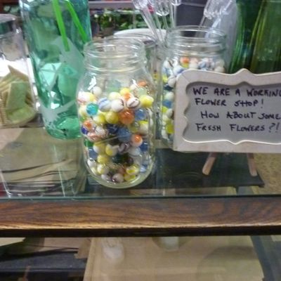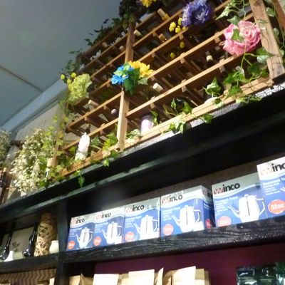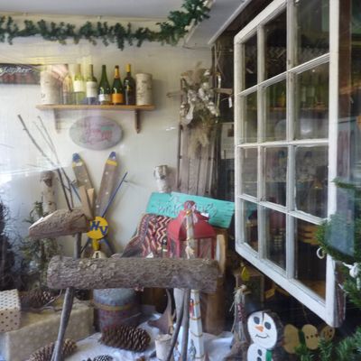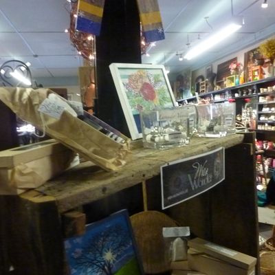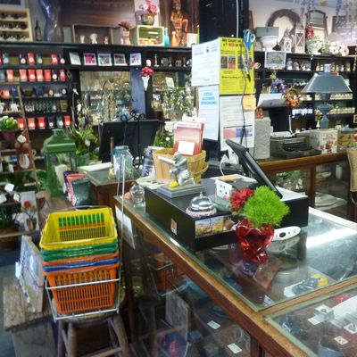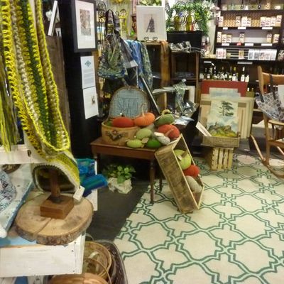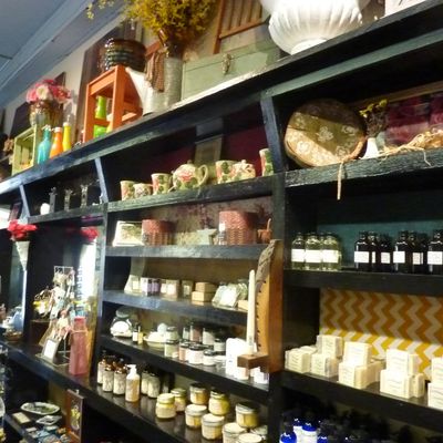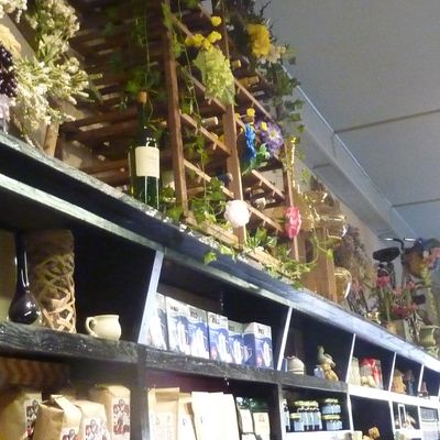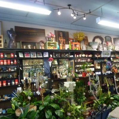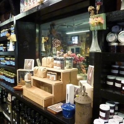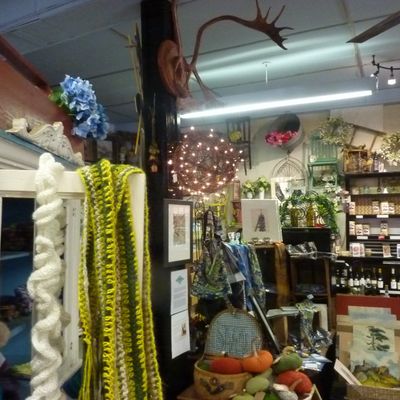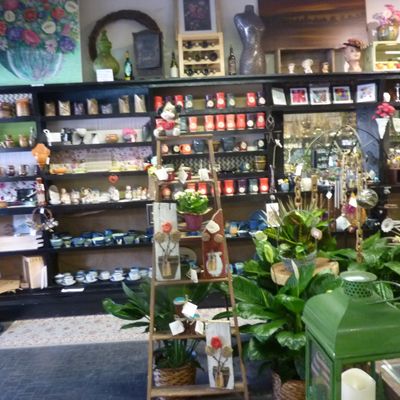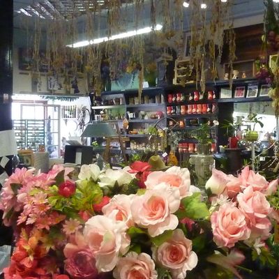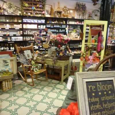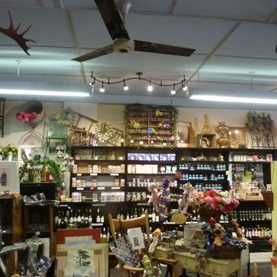 Charming shop offering a diverse selection of items. It features fresh flowers, local crafts, unique gifts, assorted foods, and wine.
