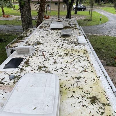 Destination for recreational vehicles, offering a range of amenities and activities. The resort features mature trees, a pool, and various community spaces.