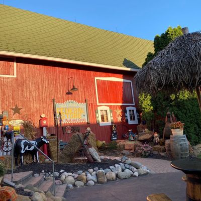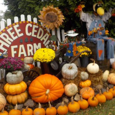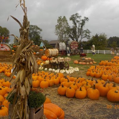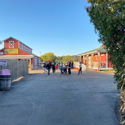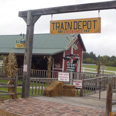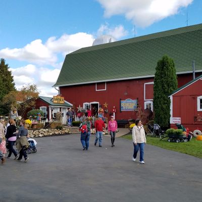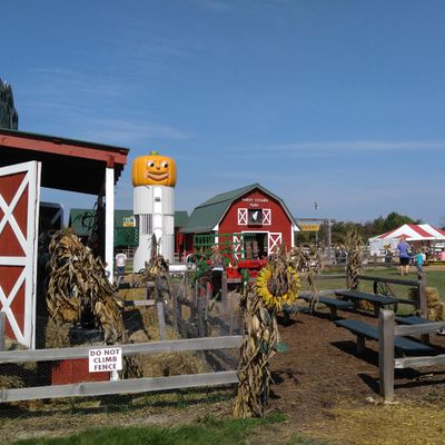 Family-friendly destination offering a variety of seasonal attractions and activities. Visitors can enjoy a petting zoo, train rides, hayrides, and a corn maze, alongside a general store selling baked goods and seasonal decorations.