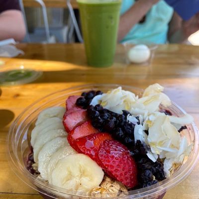 Seasonally-open cafe offering healthy, plant-focused American fare including smoothies, bowls, and sandwiches with many vegan options.