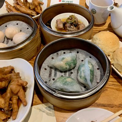 You'll want to try the Baked BBQ Pork Buns, a signature dish. Also, the Steamed Shrimp Dumplings and sesame balls are popular choices.food