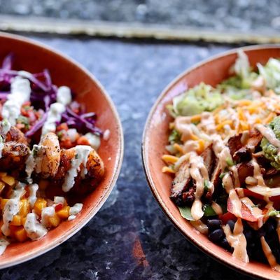 Vibrant Mexican restaurant with outdoor seating offering diverse cocktails and filling, tasty entrees like burrito bowls.