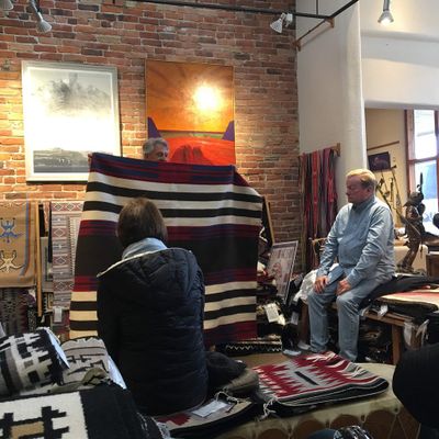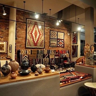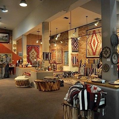 Premier art gallery specializing in authentic Native American art and crafts. The gallery features a diverse collection of items, including rugs, pottery, jewelry, and paintings, ranging from traditional to contemporary pieces.