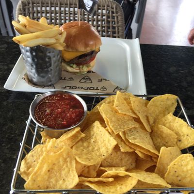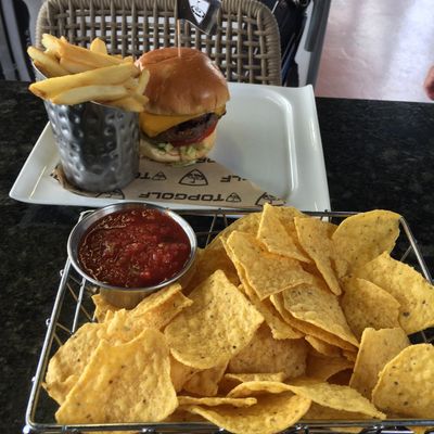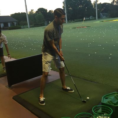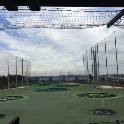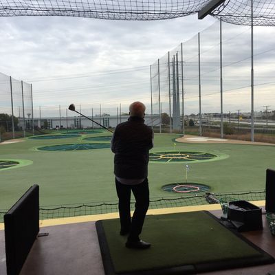 Chain entertainment venue offering a unique golfing experience. It features climate-controlled hitting bays where players can aim at targets on a large outfield.
