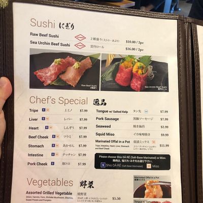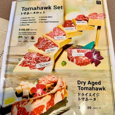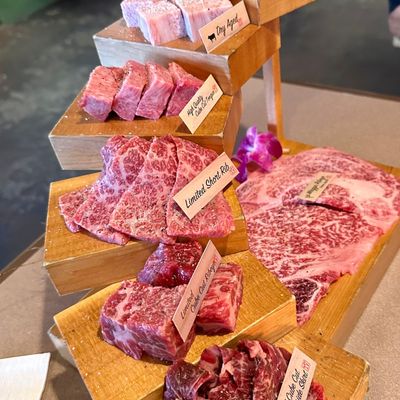 You'll want to try the A5 Japanese Wagyu Ribeye or the A5 Dry Aged Wagyu. If you're with a group, the Celebrity Set offers a great selection, including Sea Urchin Beef Sushi.