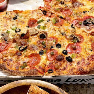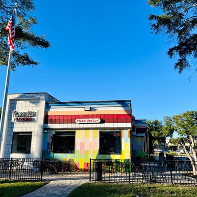 Family-friendly pizza restaurant with a casual vibe, offering delicious thin-crust pizza and other Italian dishes from a garden-adjacent location.