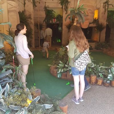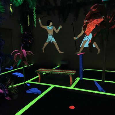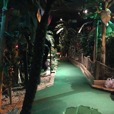 Indoor attraction offering an 18-hole miniature golf experience. The course features a mix of traditional and blacklight holes with varied themes.
