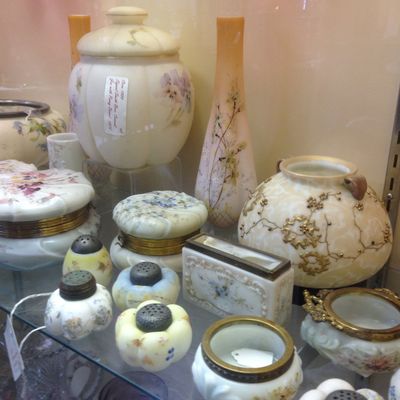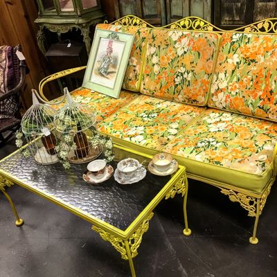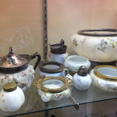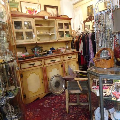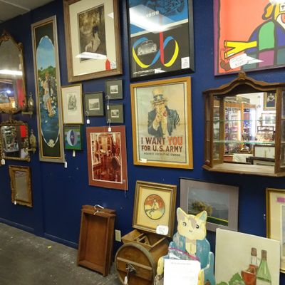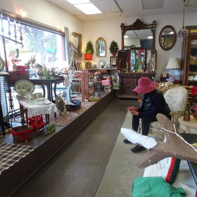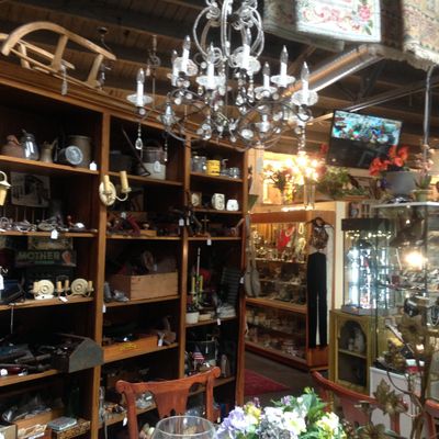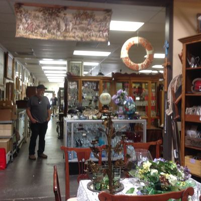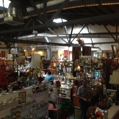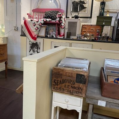 Antique mall offering a wide variety of vintage items, collectibles, and furniture. The store features an eclectic mix of goods, from crystal and antique glass to vinyl records and turquoise pieces.