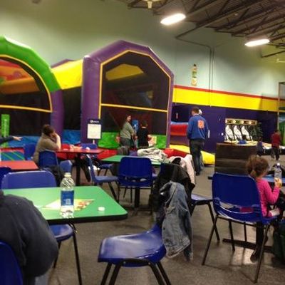 Indoor entertainment venue offering a variety of attractions for children. It features a pirate-themed climbing structure, bounce house, laser tag, and an arcade.