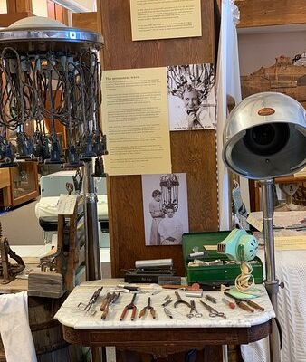 The atmosphere is quiet and educational, centered around a 4,000-square-foot collection. Outside, a historic log cabin provides a rustic touch to the grounds.ambiance_potoo