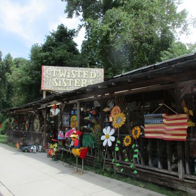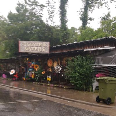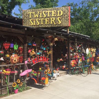 Unique roadside shop specializing in eclectic metal yard decor and indoor sculptures. The store offers a wide variety of items, including seasonal pieces, garden art, and novelty signs, often at reasonable prices.