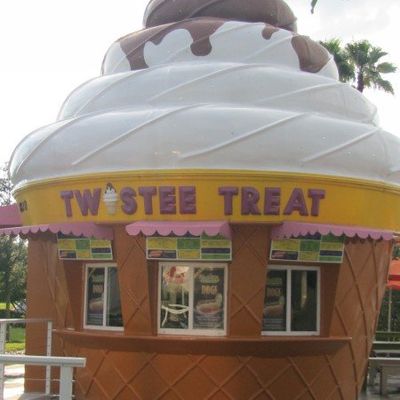 Chain serving American-style soft serve ice cream in a novelty ice cream cone-shaped building, offering a wide variety of treats and generous portions.