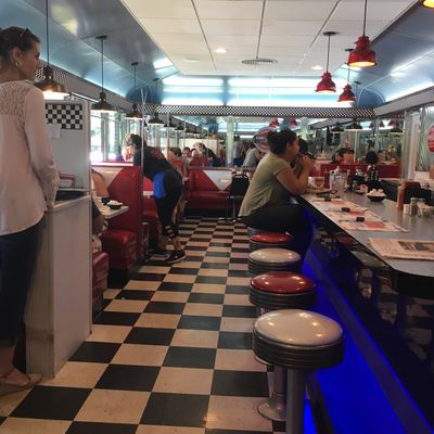This diner is known for its unique charm, featuring a working miniature model train that runs through the rafters above the dining area.story_potoo