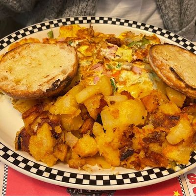 Reviewers frequently highlight the massive portions and the delightful sight of the miniature train running through the rafters. The turkey club and the sausage-based biscuits and gravy are highly recommended.reviews_potoo
