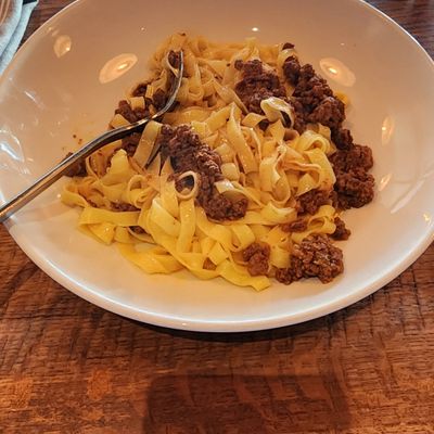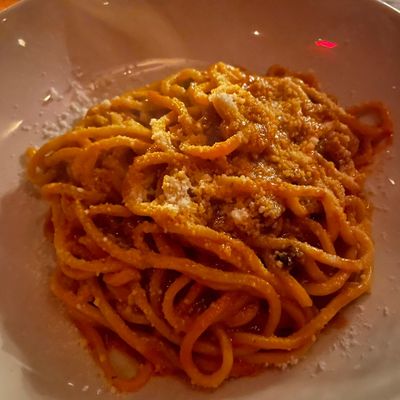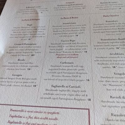Focus on the handmade pasta, which is flown in weekly from a dedicated kitchen in Bologna, Italy. The menu centers on these iconic, authentic Italian pasta preparations.food_potoo
