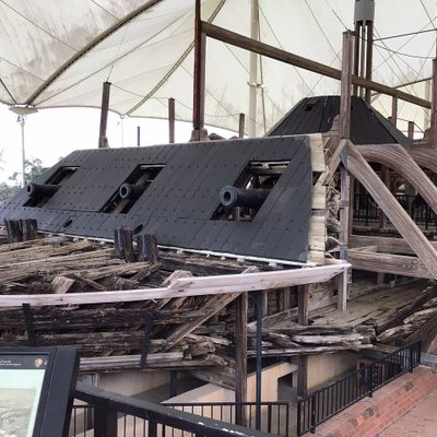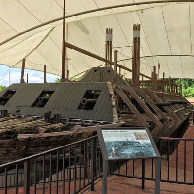 Unique historical site featuring the remains of a Civil War ironclad gunboat. Visitors can explore the salvaged vessel, which has been partially reconstructed to convey its original size and structure.