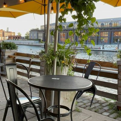 The atmosphere is chill and relaxed with vibrant decor that complements the cozy waterfront setting. It offers a warm environment suitable for a casual afternoon or evening drink.ambiance_potoo