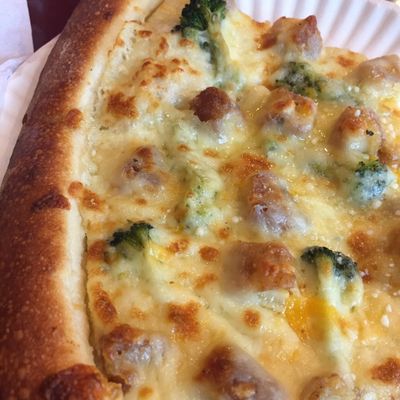 Neighborhood pizza restaurant offering classic pies, wings, and desserts; known for large portions and inconsistent service.