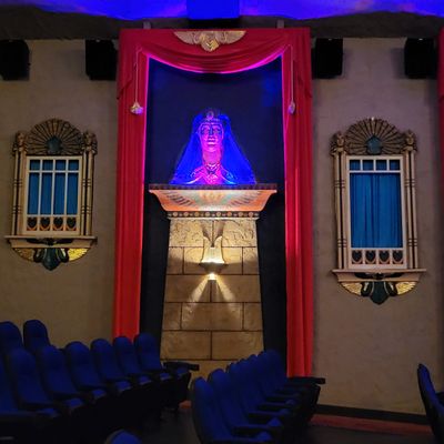The theater feels grand and roomy, offering a nostalgic single-screen cinematic experience. Moviegoers enjoy plenty of legroom in the comfortable seating during screenings.ambiance_potoo