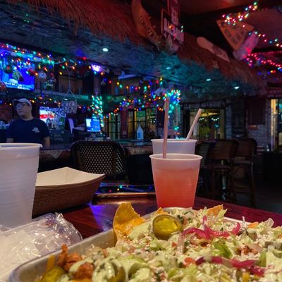 Relaxed tiki bar with a lively atmosphere offering American bar food, creative cocktails, and outdoor seating.