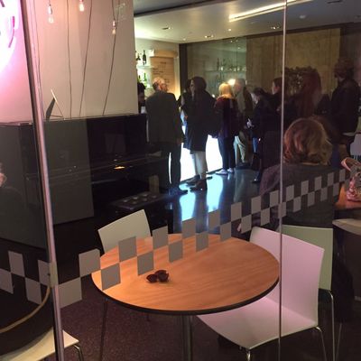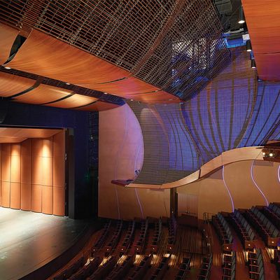 The atmosphere is sophisticated and polished, designed to complement the high-caliber performances on stage. Large, modern architectural elements create an elegant setting for evening outings.ambiance_potoo