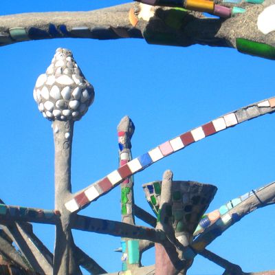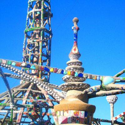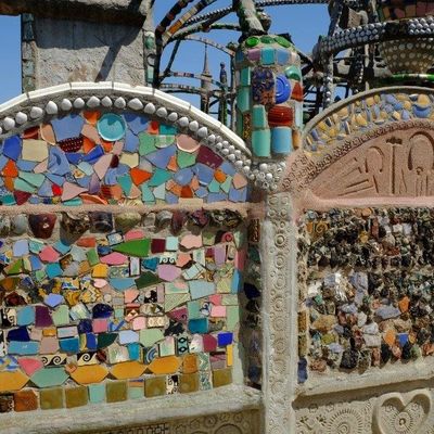 Remarkable collection of nine interconnected towers, built by self-taught Italian immigrant Simon Rodia over 33 years. Constructed from salvaged materials like steel, glass, and ceramics, these towering sculptures represent an extraordinary feat of folk art.