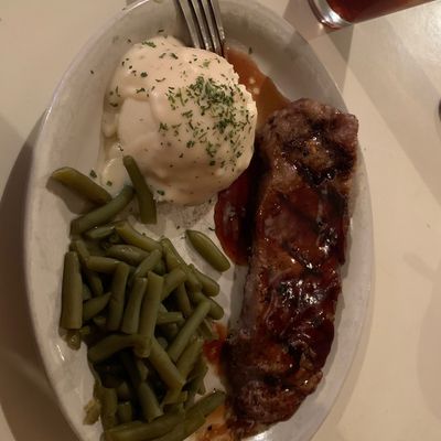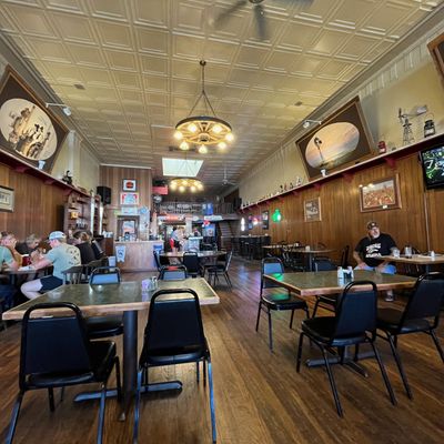Popular, locally-owned steakhouse and bar with a Western atmosphere, serving American cuisine including excellent burgers and steaks, in a small town setting.